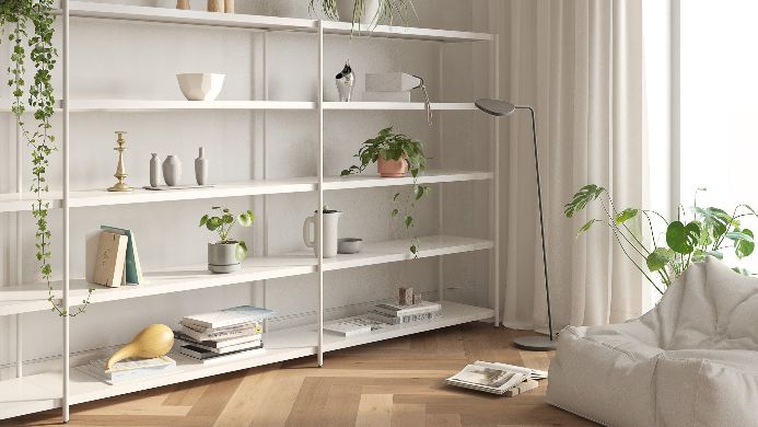 JUN shelving system offers a smart storage solution for limited spaces that require flexible use and arrangement. With all modular components, the design brings simplicity and elegance to any space.
